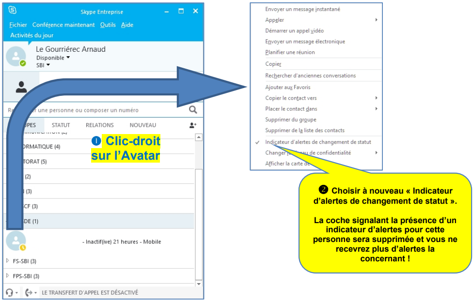 Il suffit d’activer l’indicateur d’alerte de changement de statut comme expliqué ci-dessous :