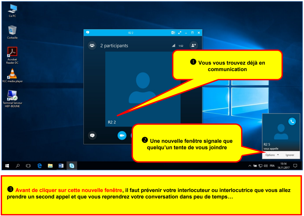 Comme vous l’aurez remarqué en parcourant les points 8 à 11, Skype Entreprise propose plusieurs possibilités pour éviter de laisser sonner votre téléphone « dans le vide ».