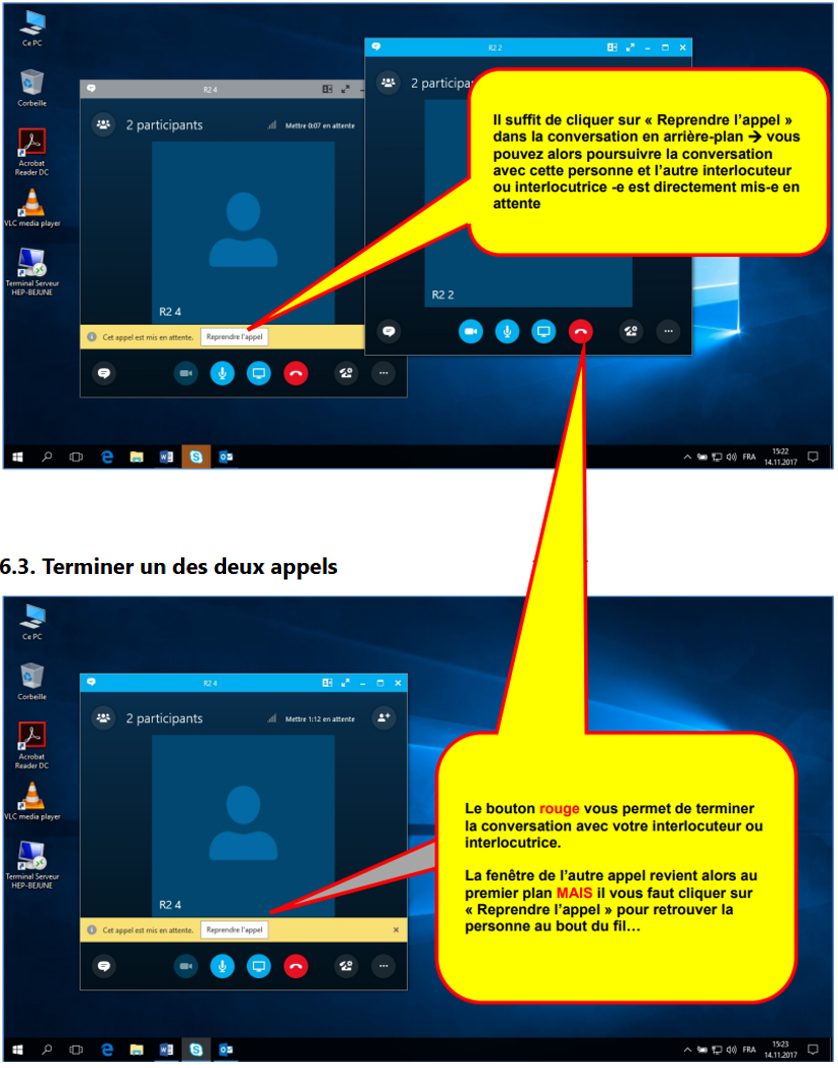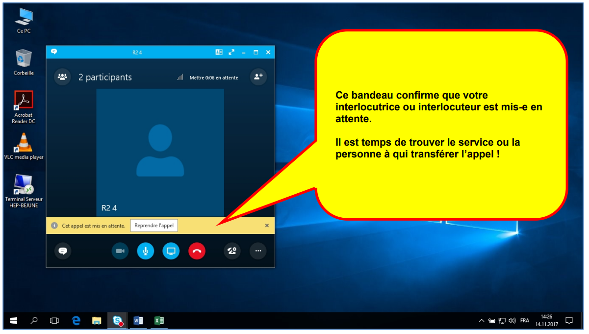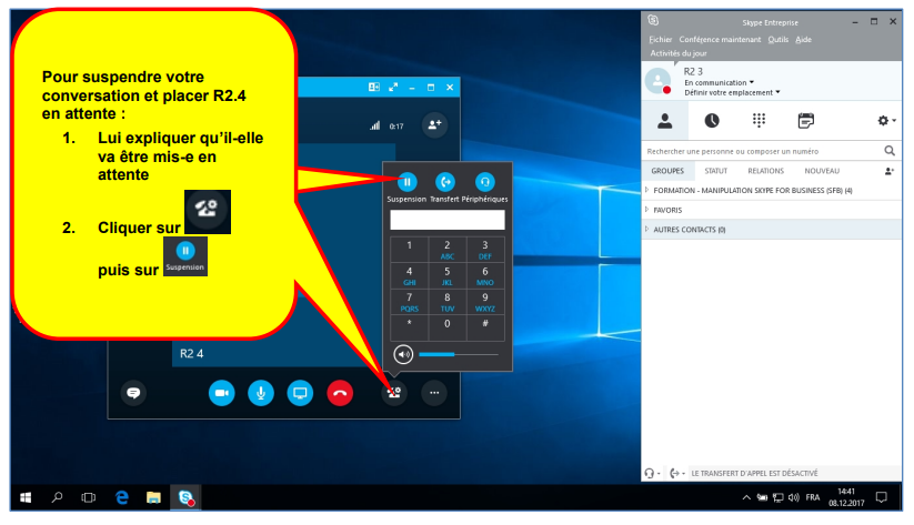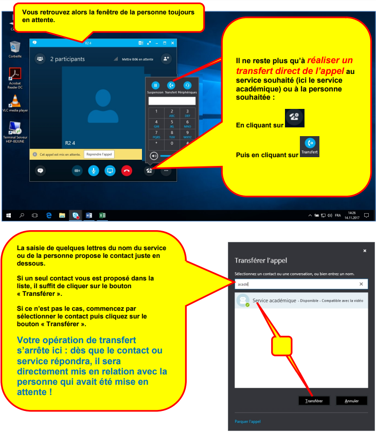 Dans la situation ci-après, vous êtes R2.3 et vous vous trouvez en conversation avec R2.4 Il s’agit de transférer cet appel à un service ou à une personne (dans cet exemple, il s’agira du service académique) après lui avoir exposé la nature de l’appel.