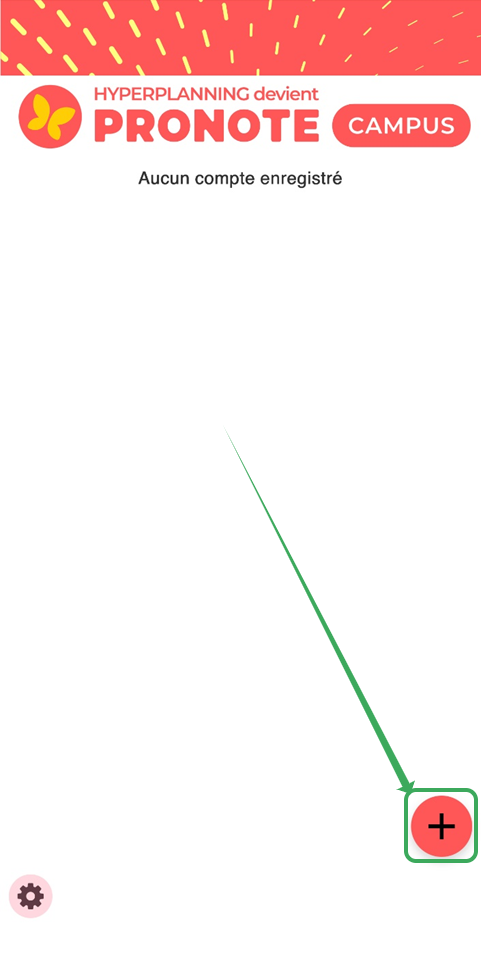 Une fois sur l'application PRONOTE Campus, appuyez sur le bouton + en bas à droite de votre écran