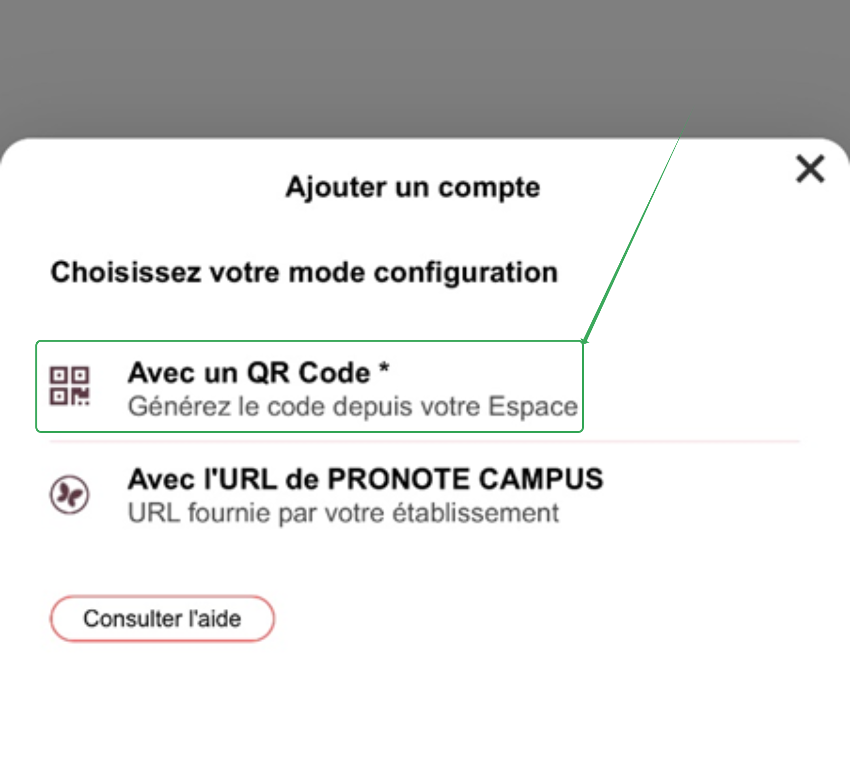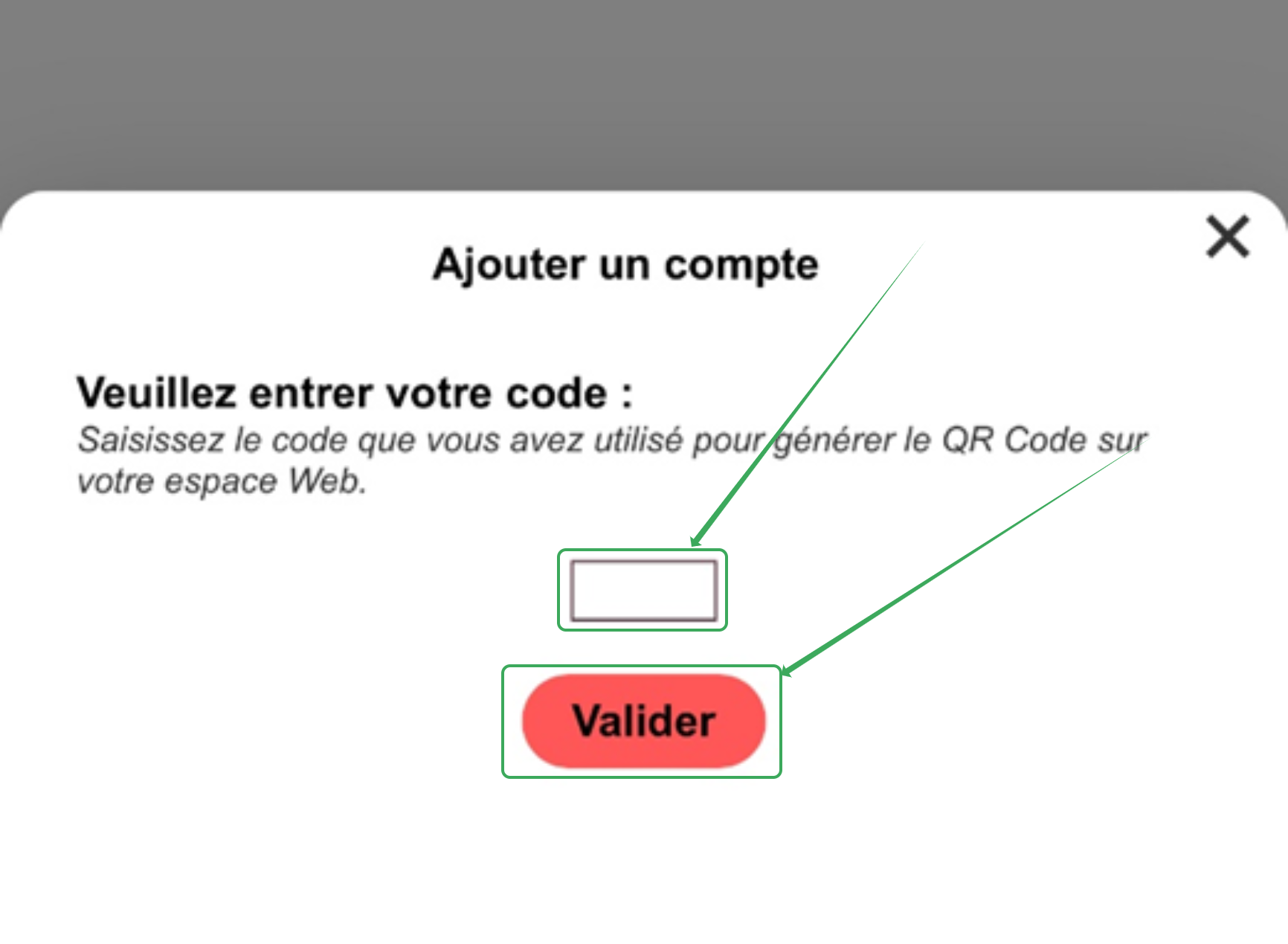 Sélectionnez ensuite l'option "Avec un QR Code" et scannez le QR Code généré précédemment