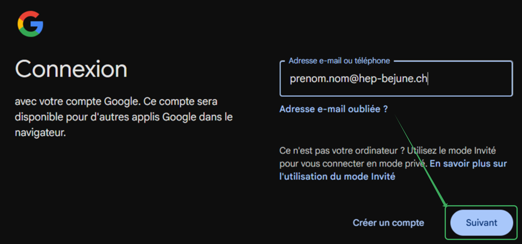 Ce document précise les modalités de connexion à l'environnement Google Suite for Education de la HEP-BEJUNE.