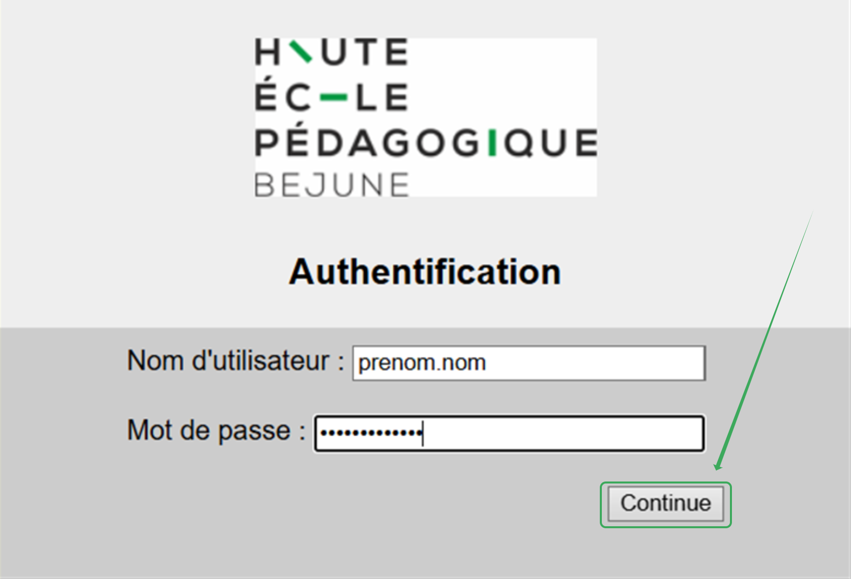 - Mot de passe : Mot de passe habituel HEP-BEJUNE